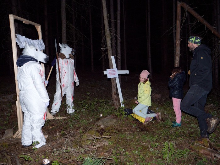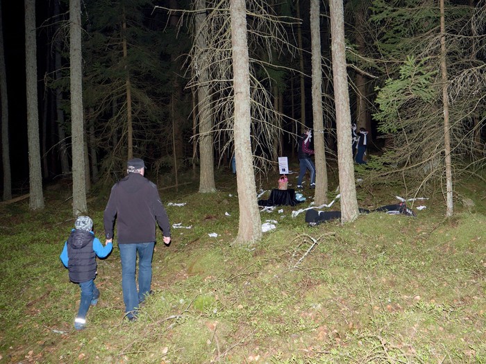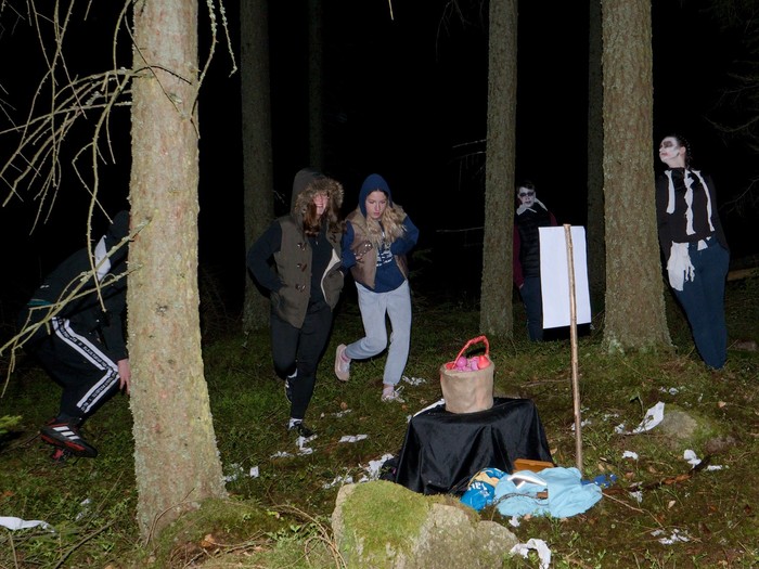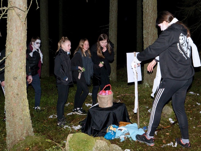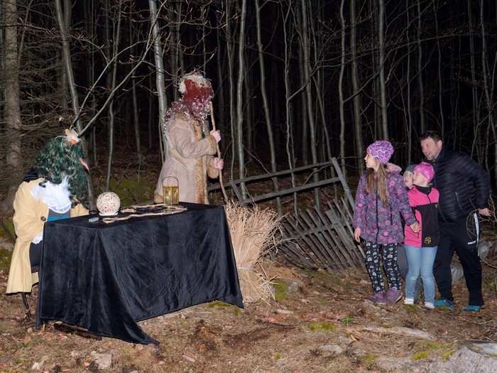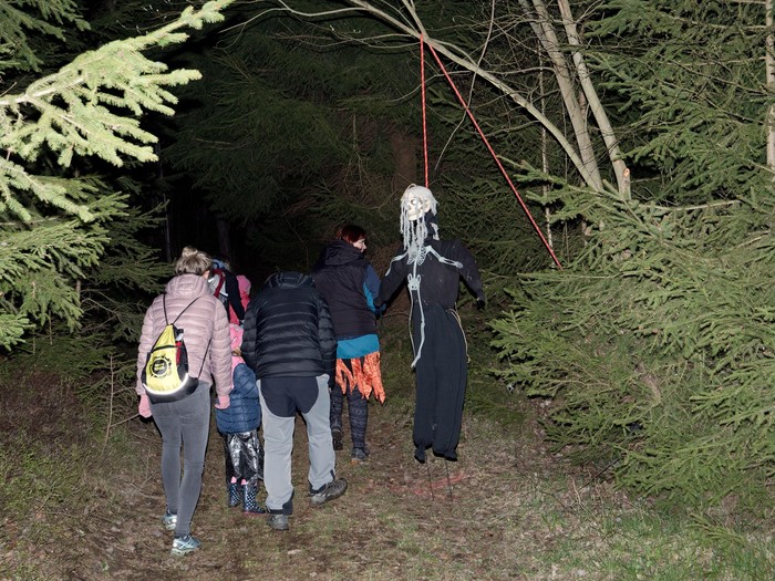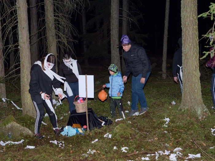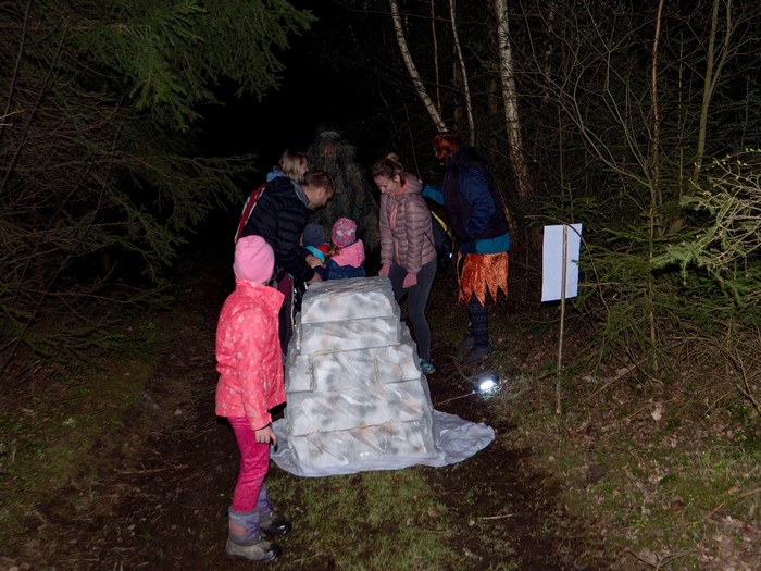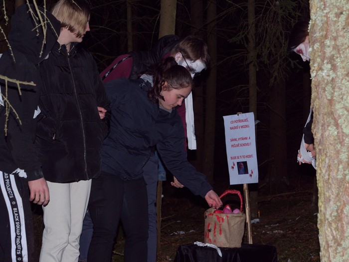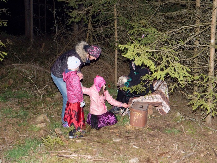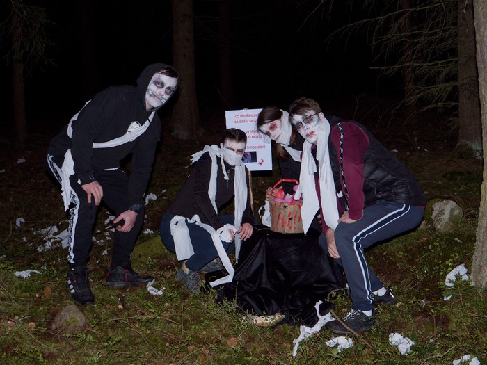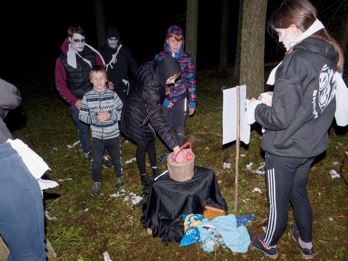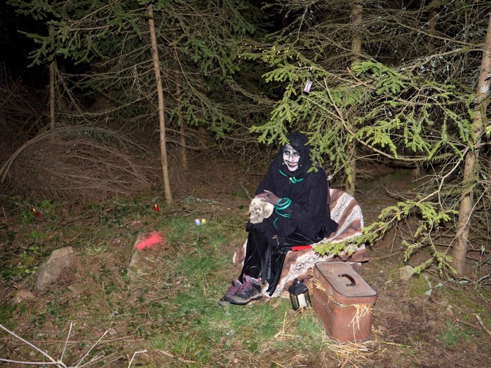 Po setmění jsme se vydali na stezku odvahy na jejímž konci stará čarodějnice hlídala poklad. Kdo byl hodně odvážný mohl si z pokladu vzít sladkou odměnu.