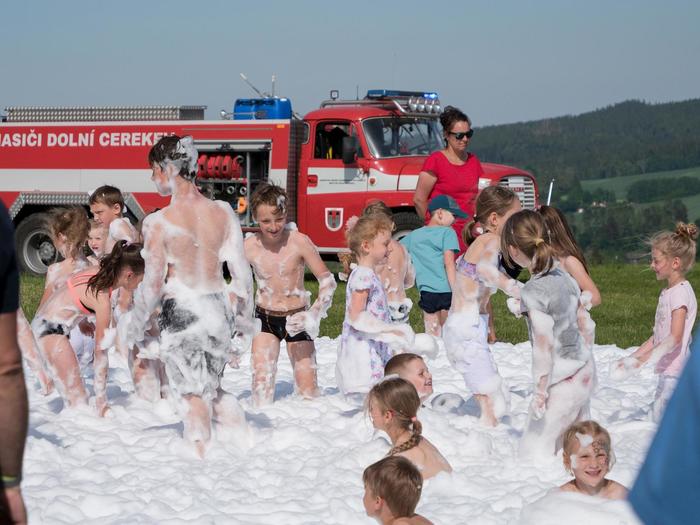 Kromě stanovišť, na kterých děti musely prokázat svůj sportovní um, byly také u městské policie řádně prozkoušeni ze znalostí pravidel silničního provozu. Za každý splněný úkol dostali sladkou odměnu. Po absolvování všech 23 stanovišť si každý sportovec mohl vybrat jakýkoliv dárek. Zpestřením dětského dne byli dva koníci, na kterých se děti mohly povozit a také se s nimi pomazlit. Krásnou tečku pro nás připravili hasiči z Dolní Cerekve, kteří během chviličky vytvořili pěnové moře a po dokonalém řádění všechny zúčastněné osprchovali.