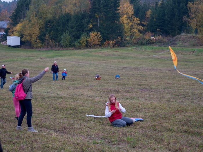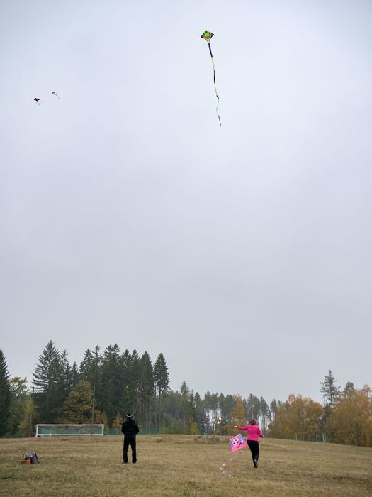 V sobotu 19.10. si na louce pod hřištěm do výše mraků vylétlo téměř 40 draků. V nebi se potkali motýlci, chobotnice, berušky, skaláři, kobry, netopýři a mnoho dalších. Sem tam se objevili i draci v barvách české vlajky z loňské oslavy 100. výročí založení ČSR. Po dvou hodinách pouštění jsme se postupně přesunuli k ohni a opékali jsme špekáčky. Ti, kdo vydrželi trochu déle ochutnali i výtečné brambory z ohýnku, které nám daroval pan Jiří Nevoral a za což mu děkujeme.