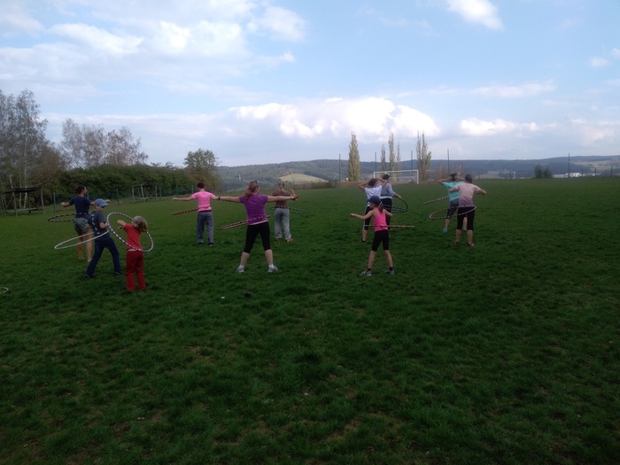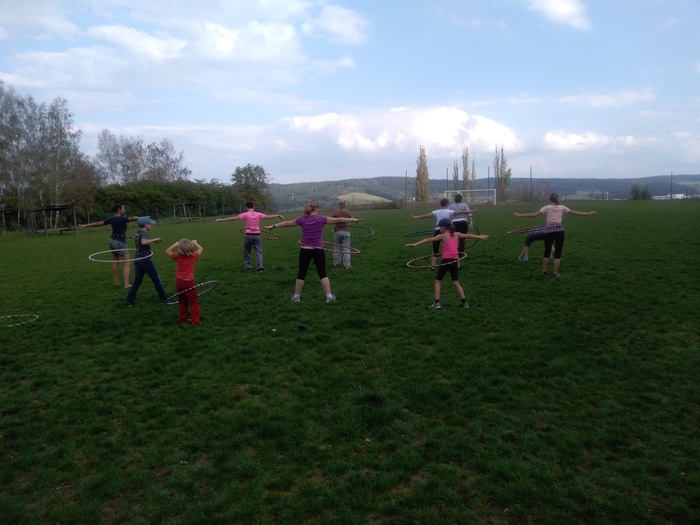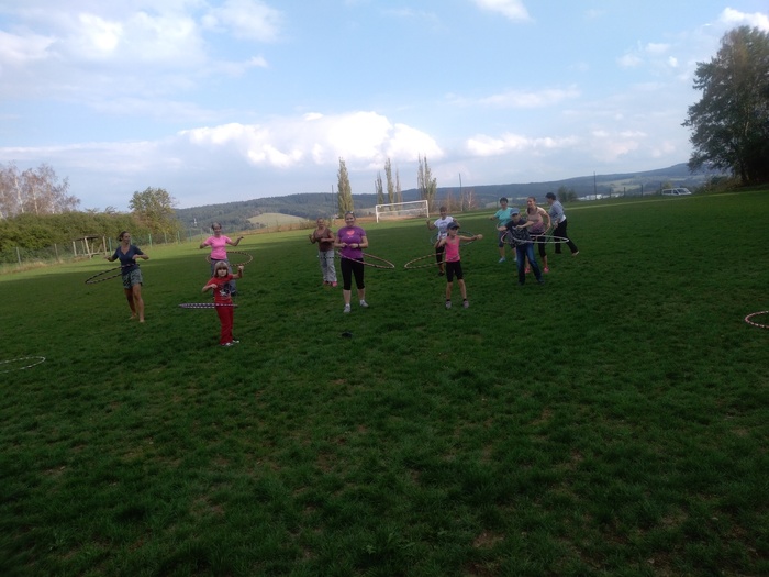 V sobotu 15.9. 2018 jsme se sešly na fotbalovém hřišti, abychom si s Hankou vyzkoušely kroužení s velkou obručí.Bylo to velice příjemné odpoledne, při kterém jsme se krásně protáhly, zasmály se a naučily základní pohyby kroužení. Už se těšíme na další lekci.