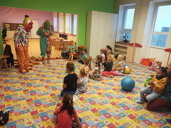 V letošním roce naše děti ze školy i školky po dlouhé odmlce přivítali klauni Petr a Lucka. Přišli s veselou náladou, písničkou a spoustou dárečků. Děti byly nadšené a užily si první školní den se spoustou legrace. I páťáci, kteří se už necítili na dětské hrátky se nakonec zapojili do klaunského veselí.