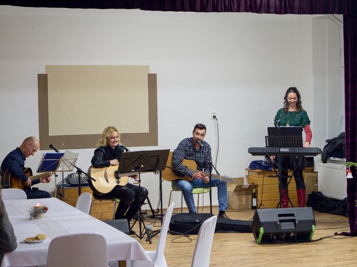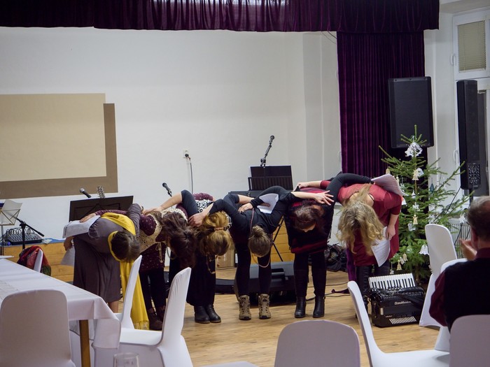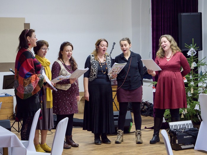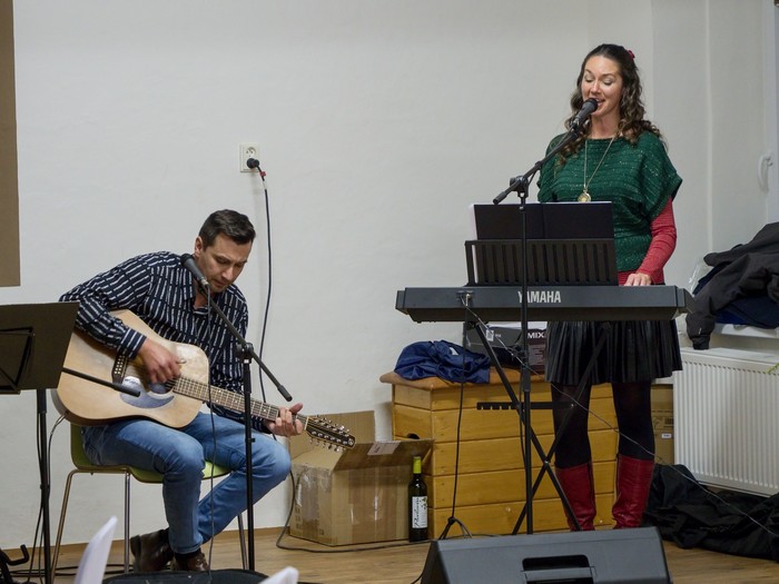 V letošním roce nás přijely naladit hned dvě kapely a to „Kolegyně korále“ v podání 6 žen, které nám zazpívaly staročeské vánoční koledy v neobvyklém, ale krásném podání. Přestože neměly hudební doprovod, mohli jsme zaslechnout i neidentifikované, leč zajímavé hudební nástroje. Druhá kapela „Folks“ nás provedla folkovým hudebním světem a zazněly nejznámější folkové písně.