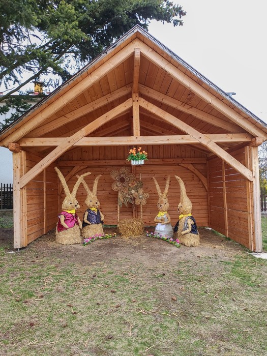 V letošním roce si cejlečtí zajíci připravili velikonoční fotokoutek se slámovou židličkou, na které se mohou děti pohodlně usadit a vyfotit.